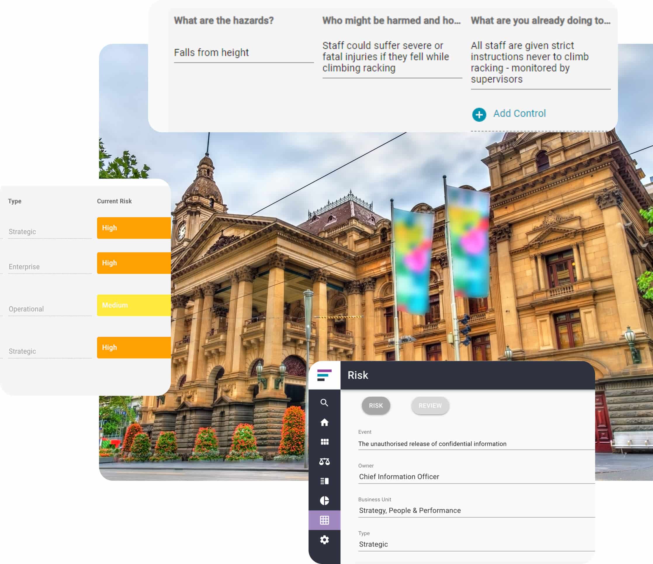 Our GRC software for local government empowers councils to manage risk, compliance, safety, and strategy in one platform. Built with councils in mind, it simplifies regulatory obligations, streamlines planning, and enhances transparency so leaders can deliver better outcomes for their communities.